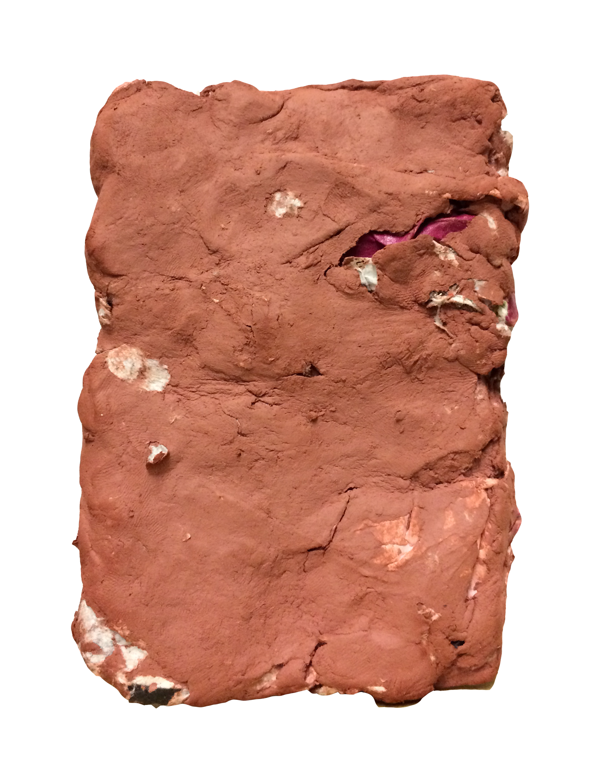 Shape of Time, For Rashid Johnson, 2017, clay, book page, metal